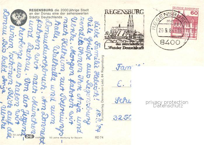 73668160 REGENSBURG Bayern 2000jaehrige Stadt an der Donau Fliegeraufnahme postalisch gelaufen Erhaltung siehe scans [FriedD77] alte Postkarte Frie Katcode 11110009362000
