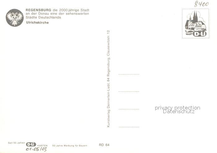 72954439 REGENSBURG Bayern 2000jaehrige Stadt an der Donau Ulrichskirche postalisch nicht gelaufen Erhaltung siehe scans [FriedD77] KatCode: 11110009362000
