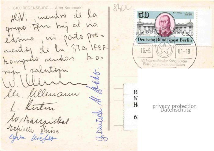 74049134 REGENSBURG Bayern Alter Kornmarkt Stadtturm Blick zum Dom postalisch gelaufen Erhaltung siehe scans [FriedD77] alte Postkarte Frie Katcode 11110009362000