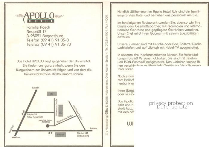 73764890 REGENSBURG Bayern Apollo Hotel Teilansichten m. Hallenschwimmbad Informationen postalisch nicht gelaufen Werbekarte (keine Postkarte) Erhaltung siehe scans [LiesaD40] Werbekarte (keine Postkarte) Lies Katcode 11110009362000