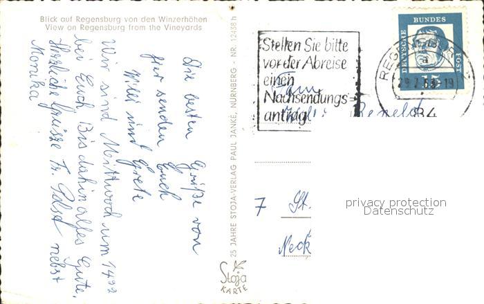 71926537 alte Postkarte REGENSBURG Bayern Blick von Winzerhoehen postalisch gelaufen Erhaltung siehe scans KatCode: 11110009362000