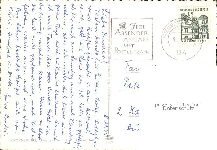 72592557 alte Postkarte REGENSBURG Bayern Dom postalisch gelaufen Erhaltung siehe scans [AndreD76] KatCode: 11110009362000
