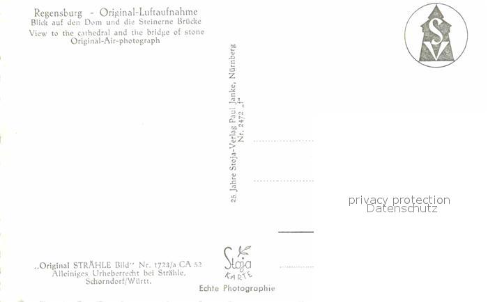 72640686 REGENSBURG Bayern Dom Steinerne Bruecke Luftaufnahme postalisch nicht gelaufen Erhaltung siehe scans [KathaD79] KatCode: 11110009362000