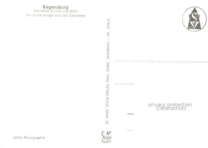 73136785 REGENSBURG Bayern Donau Steinerne Bruecke und Dom postalisch nicht gelaufen Erhaltung siehe scans [FriedD77] KatCode: 11110009362000
