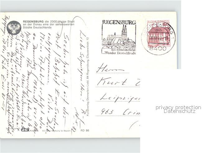72390978 alte Postkarte REGENSBURG Bayern Donaupartie postalisch gelaufen Erhaltung siehe scans KatCode: 11110009362000