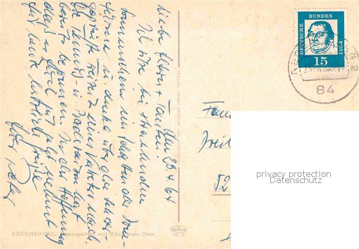 72900109 alte Postkarte REGENSBURG Bayern Donaupartie Dom postalisch gelaufen Erhaltung siehe scans [AndreD76] KatCode: 11110009362000