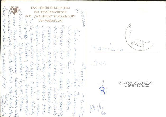 72544706 alte Postkarte REGENSBURG Bayern Famlilienerholungsheim Waldheim postalisch gelaufen Erhaltung siehe scans [NatalD47 kv014box] KatCode: 11110009362000