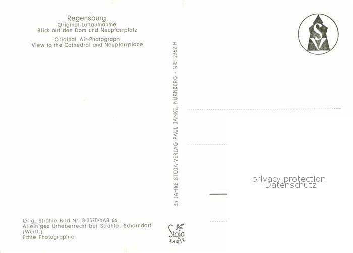 72797301 REGENSBURG Bayern Fliegeraufnahme Dom postalisch nicht gelaufen Erhaltung siehe scans [AndreD76] KatCode: 11110009362000