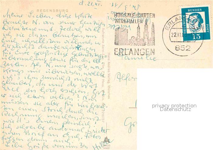 72890320 alte Postkarte REGENSBURG Bayern Fliegeraufnahme Dom postalisch gelaufen Erhaltung siehe scans [AndreD76] KatCode: 11110009362000