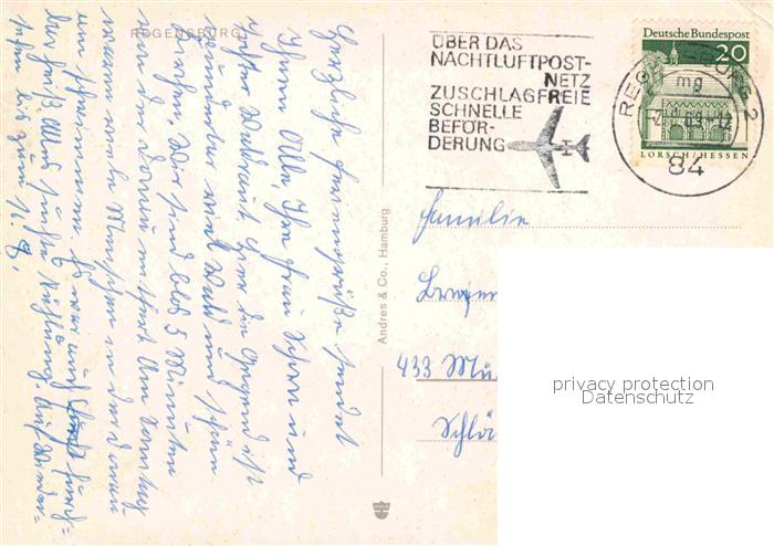 72793140 alte Postkarte REGENSBURG Bayern Fliegeraufnahme Donaupartie postalisch gelaufen Erhaltung siehe scans [LiesaD40] KatCode: 11110009362000