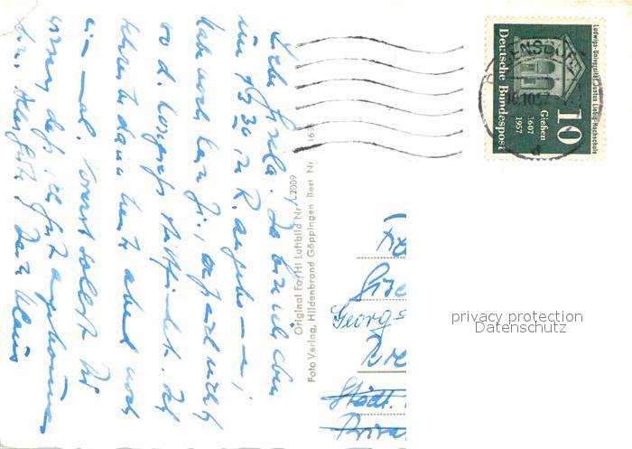 72772059 alte Postkarte REGENSBURG Bayern Fliegeraufnahme mit Donau postalisch gelaufen Erhaltung siehe scans [LiesaD40] KatCode: 11110009362000