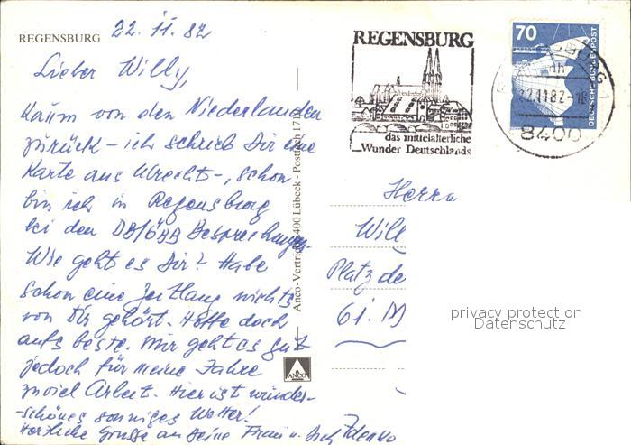 72248108 alte Postkarte REGENSBURG Bayern Fliegeraufnahme mit Muenster und Brueckenpartie postalisch gelaufen Erhaltung siehe scans KatCode: 11110009362000