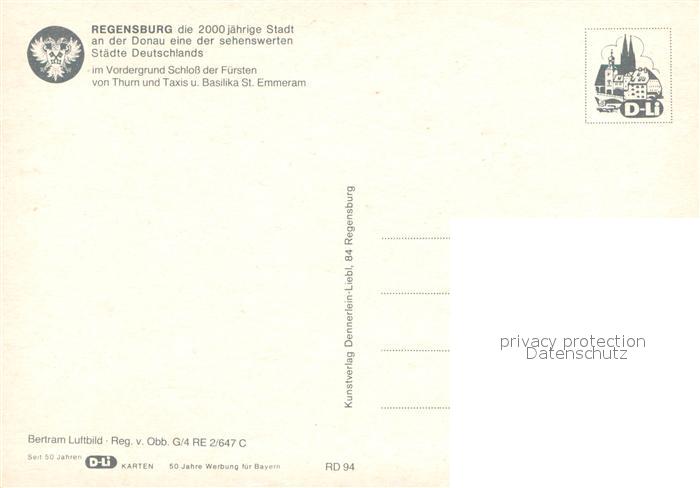 73713507 REGENSBURG Bayern Fliegeraufnahme mit Schloss der Fuersten von Thurn und Taxis und Basilika St Emmeram postalisch nicht gelaufen Erhaltung siehe scans [WerneD78] Wern Katcode 11110009362000