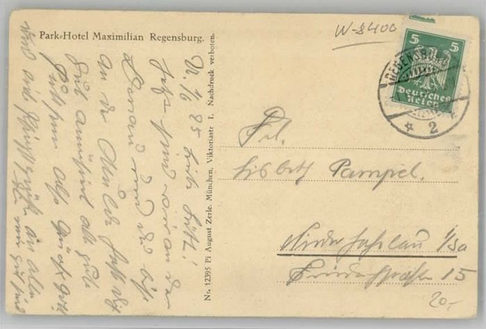 40221946 REGENSBURG Bayern Hotel Maximilian x 1925 postalisch gelaufen Alte Ansichtskarte Postkarte alte Postkarte Katcode 11110009362000