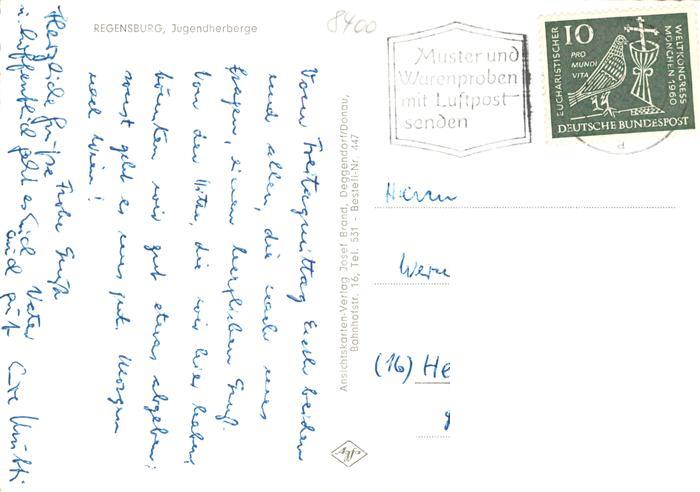 73875507 REGENSBURG Bayern Jugendherberge Kirche postalisch gelaufen Erhaltung siehe scans [WerneD78] alte Postkarte Wern Katcode 11110009362000