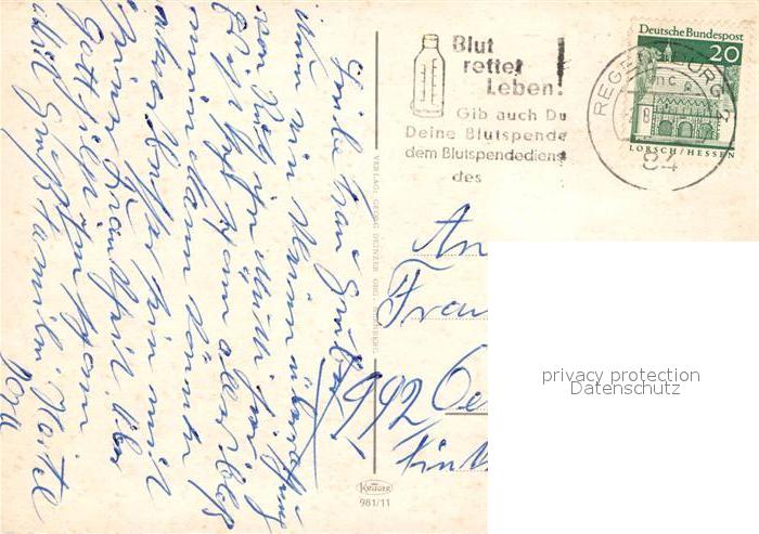 72984525 alte Postkarte REGENSBURG Bayern Kirche Brueckenpartien postalisch gelaufen Erhaltung siehe scans [LiesaD40] KatCode: 11110009362000