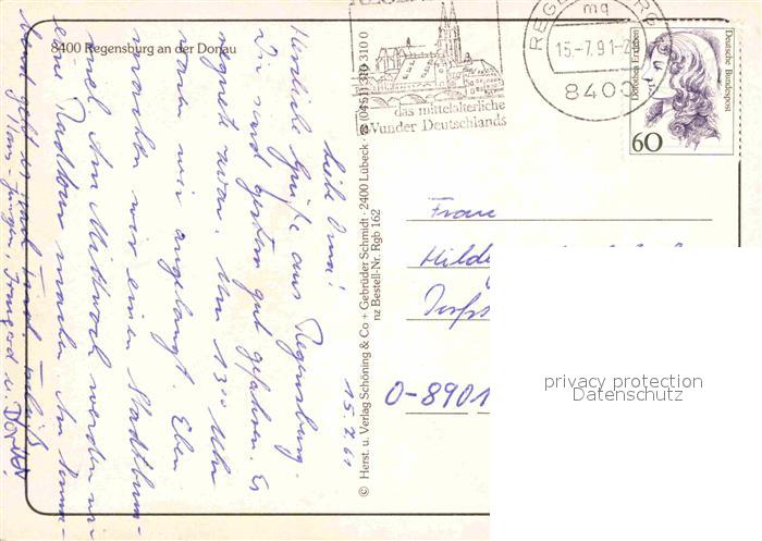 72846251 alte Postkarte REGENSBURG Bayern Ostentor Steinerne Bruecke Donau Dom St Peter Neupfarrplatz Ulrichskirche Reichssaalbau Rathaus postalisch gelaufen Erhaltung siehe scans [FriedD77] KatCode: 11110009362000
