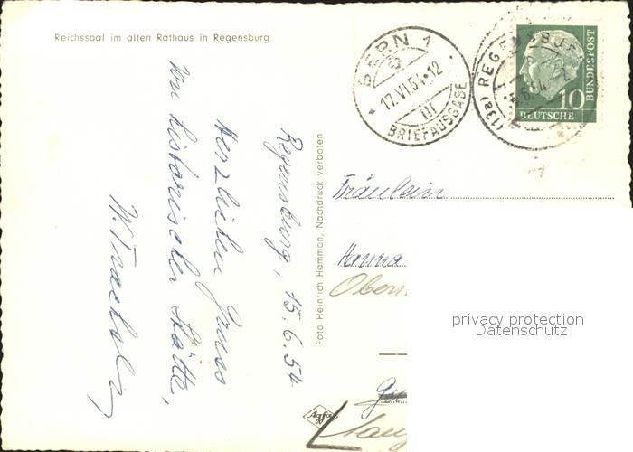 72349699 alte Postkarte REGENSBURG Bayern Reichssaal im alten Rathaus postalisch gelaufen Erhaltung siehe scans KatCode: 11110009362000