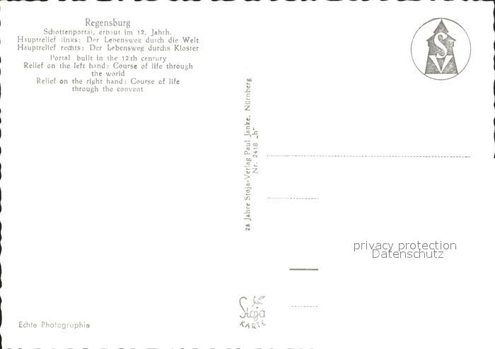 72064715 REGENSBURG Bayern Schottenportal Kloster postalisch nicht gelaufen Erhaltung siehe scans KatCode: 11110009362000