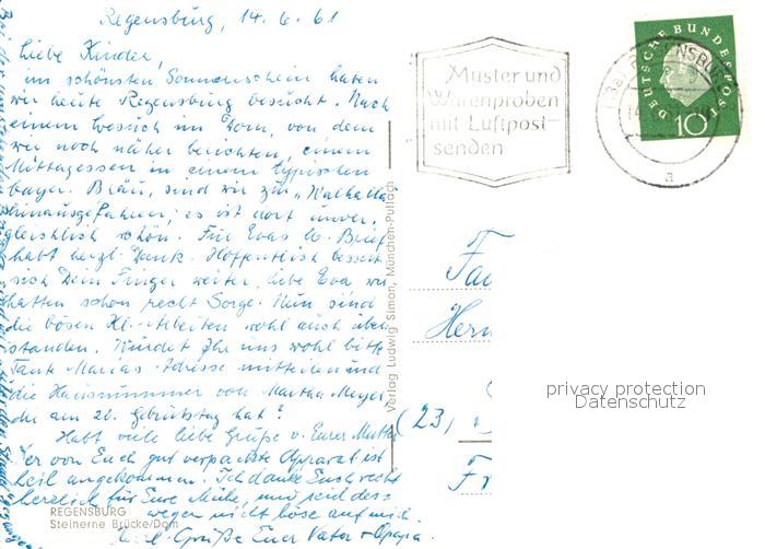 73028173 alte Postkarte REGENSBURG Bayern Steinerne Bruecke Dom postalisch gelaufen Erhaltung siehe scans [KathaD81] KatCode: 11110009362000