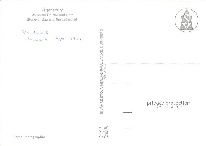 72170328 REGENSBURG Bayern Steinerne Bruecke mit Dom postalisch nicht gelaufen Erhaltung siehe scans KatCode: 11110009362000