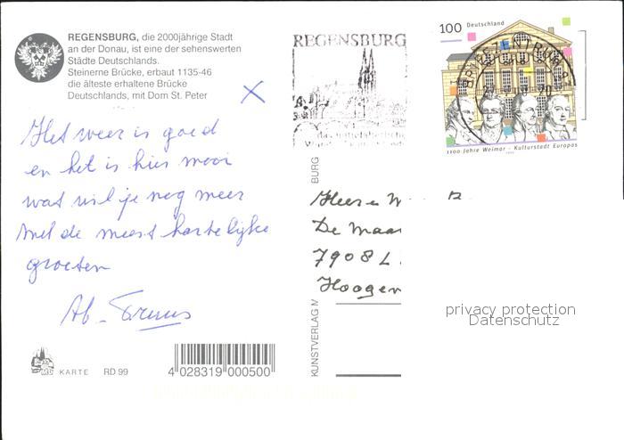 72305241 alte Postkarte REGENSBURG Bayern Steinerne Bruecke und Dom postalisch gelaufen Erhaltung siehe scans KatCode: 11110009362000
