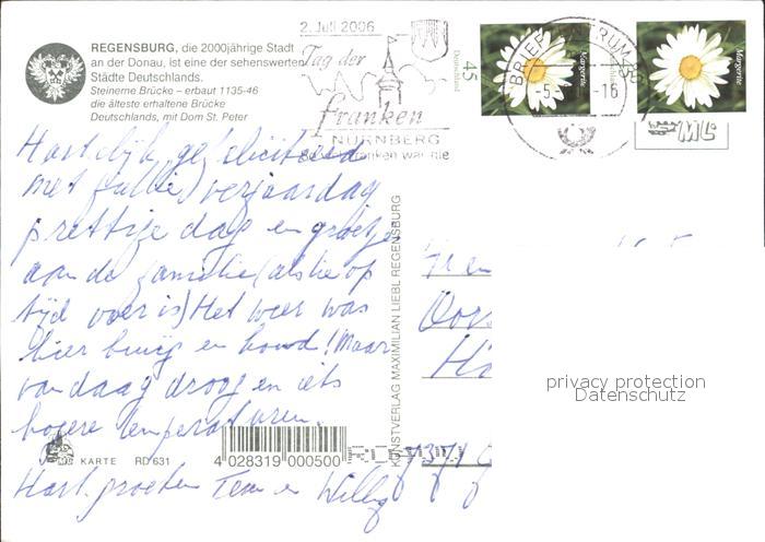 72333902 alte Postkarte REGENSBURG Bayern steinerne Donaubruecke postalisch gelaufen Erhaltung siehe scans KatCode: 11110009362000