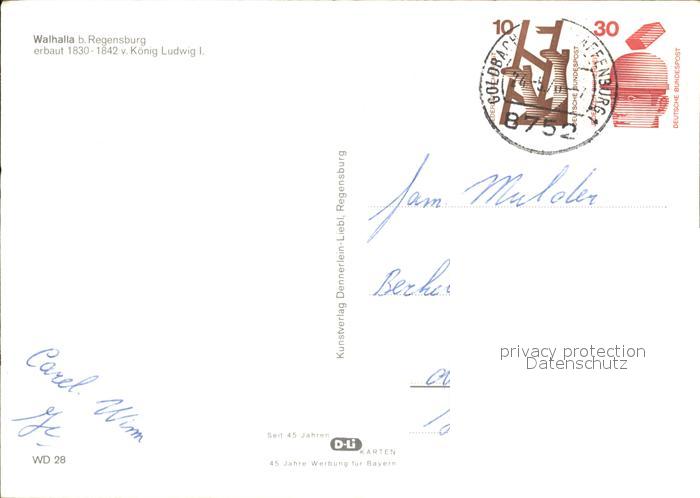 72435046 alte Postkarte REGENSBURG Bayern Walhalla postalisch gelaufen Erhaltung siehe scans KatCode: 11110009362000
