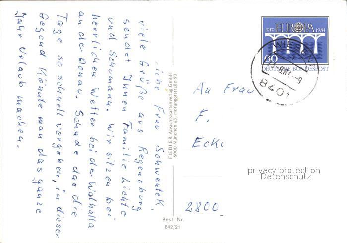 72391100 alte Postkarte REGENSBURG Bayern Walhalla Befreiungshalle Kloster Weltenburg postalisch gelaufen Erhaltung siehe scans KatCode: 11110009362000