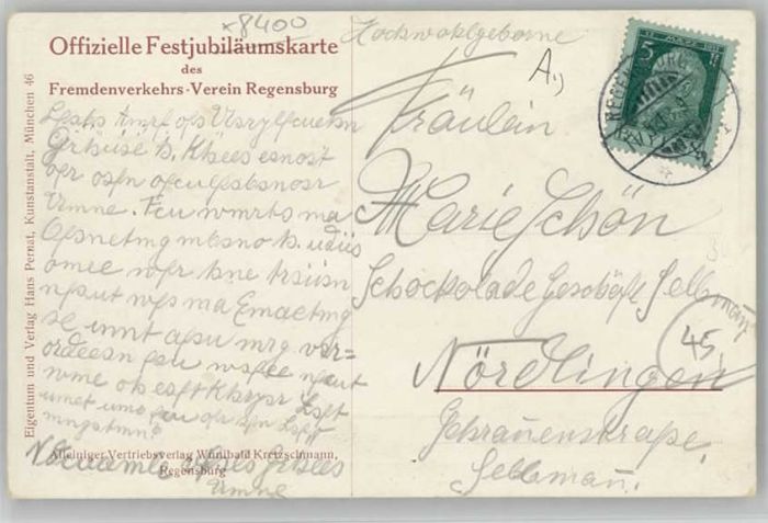 40223201 Regensburg Festjubilaeumskarte x 1913 KatCode 11110009362000