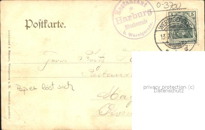 alte Postkarte Regenschirmkarte im Fluge ueber Wernigerode Armeleuteberg Aussichtsturm postalisch gelaufen Erhaltung siehe scans