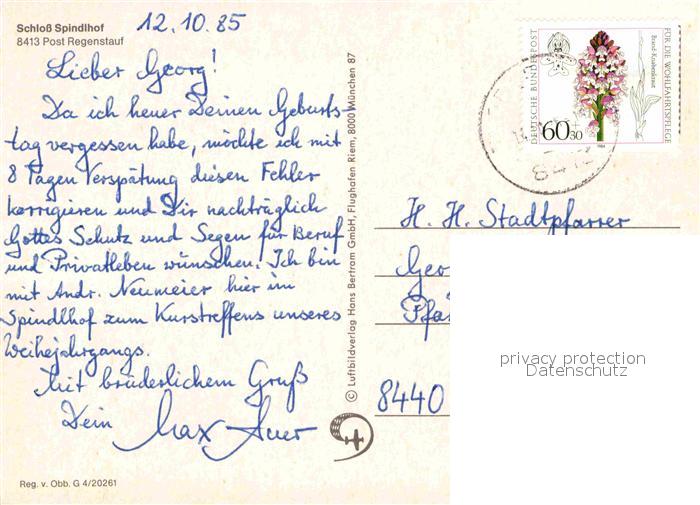 72667271 alte Postkarte Regenstauf Fliegeraufnahme Schloss Spindlhof postalisch gelaufen Erhaltung siehe scans [LiesaD40] KatCode: 11110009375190