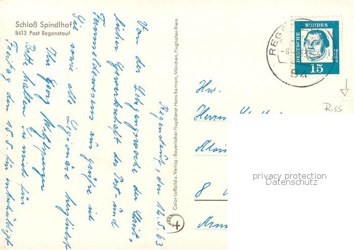 43511892 alte Postkarte Regenstauf Fliegeraufnahme Schloss Spindlhof postalisch gelaufen Erhaltung siehe scans [KathaD81] KatCode: 11110009375190