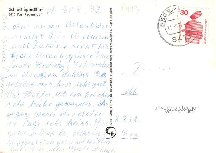 73174903 alte Postkarte Regenstauf Fliegeraufnahme Schloss Spindlhof postalisch gelaufen Erhaltung siehe scans [NatalD47] KatCode: 11110009375190