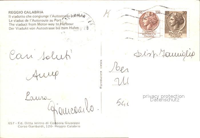 old postcard Reggio Calabria Viadotto Autostrada col Porto Viadukt Hafen postalisch gelaufen Erhaltung siehe scans