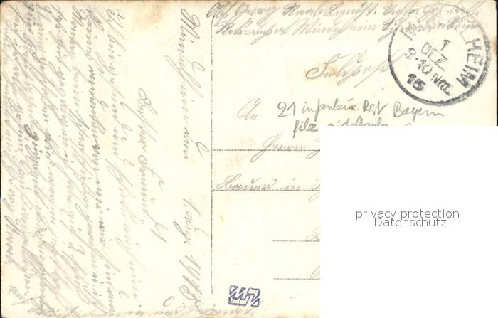 32302703 alte Postkarte Regiment Bayern 021 Infanterie Portrait WK 1 postalisch gelaufen Feldpost Erhaltung siehe scans KatCode: 11110009563000