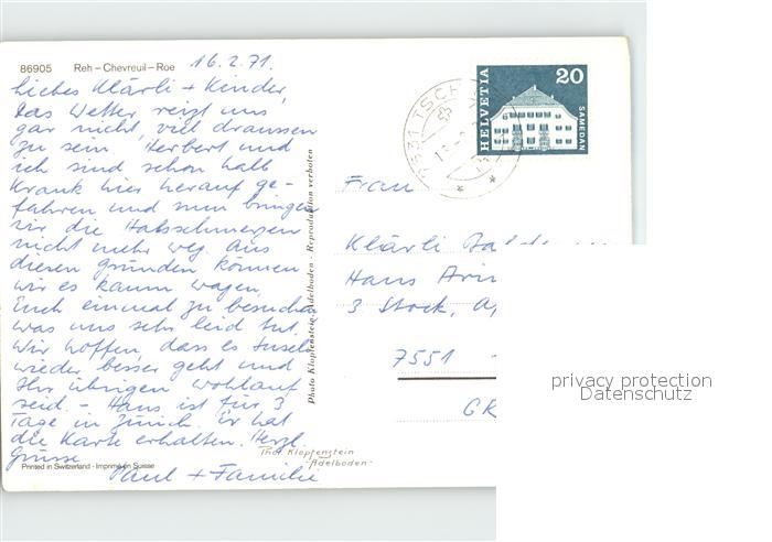 alte Postkarte Reh Chevreuil Roe postalisch gelaufen Erhaltung siehe scans