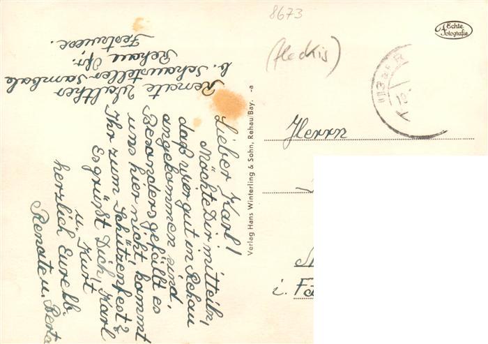 73896402 alte Postkarte Rehau Bayerische Ostmark Anlage an der Dr Rudolf Breitscheid Strasse postalisch gelaufen Erhaltung siehe scans [WerneD78] KatCode: 11110009475162