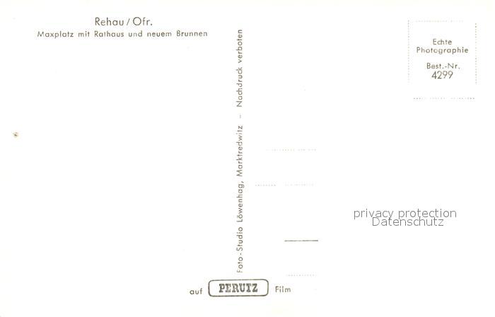 73253258 Rehau Oberfranken Maxplatz Rathaus neuer Brunnen postalisch nicht gelaufen Erhaltung siehe scans [KathaD81] KatCode: 11110009475162