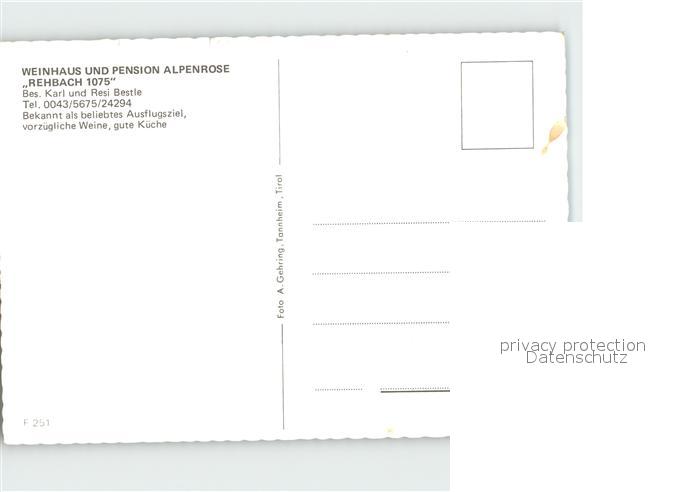 72143941 Rehbach Tirol Weinhaus und Pension Alpenrose postalisch nicht gelaufen Erhaltung siehe scans KatCode: 11390
