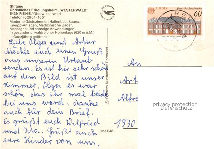 73011151 alte Postkarte Rehe Westerwald Christl Erholungsheim Speisesaal Hallenbad Hauskapelle Zimmer postalisch gelaufen Erhaltung siehe scans [WerneD78] KatCode: 11110007143285