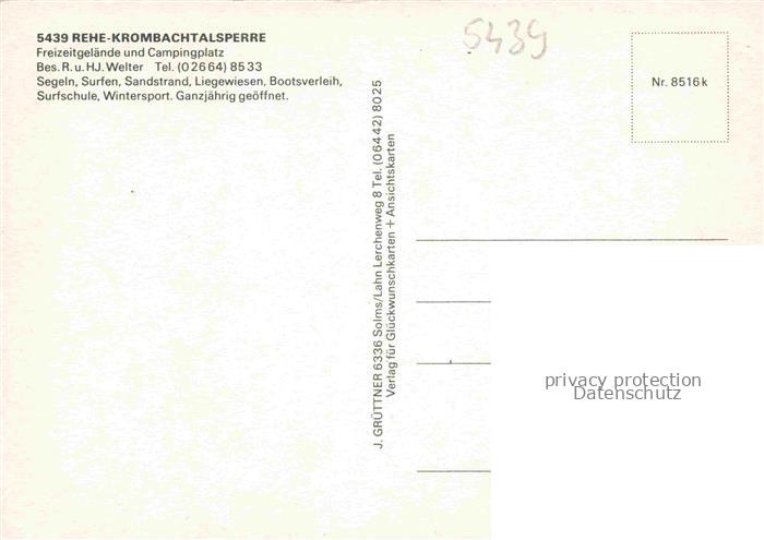 74041048 Rehe Westerwald Rheinland-Pfalz Campingplatz Krombachtalsperre Gaststaette Bar postalisch nicht gelaufen Erhaltung siehe scans [WerneD78] KatCode: 11110007143285