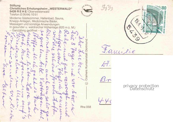 74040996 alte Postkarte Rehe Westerwald Rheinland-Pfalz Christl Erholungsheim Westerwald Stiftung postalisch gelaufen Erhaltung siehe scans [WerneD78] KatCode: 11110007143285