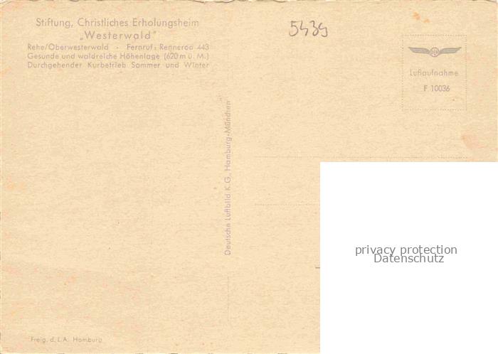 74040988 Rehe Westerwald Rheinland-Pfalz Christl Erholungsheim Westerwald Stiftung Fliegeraufnahme postalisch nicht gelaufen Erhaltung siehe scans [WerneD78] KatCode: 11110007143285