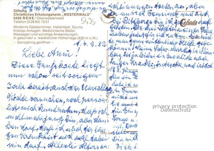 74040999 Rehe Westerwald Rheinland-Pfalz Christl Erholungsheim Westerwald Stiftung postalisch nicht gelaufen Erhaltung siehe scans [WerneD78] KatCode: 11110007143285