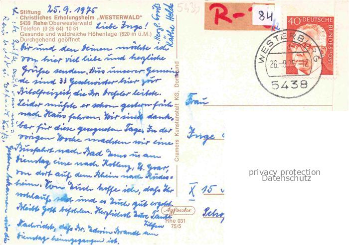 74041023 alte Postkarte Rehe Westerwald Rheinland-Pfalz Stiftung Christliches Erholungsheim Westerwald postalisch gelaufen Erhaltung siehe scans [WerneD78] KatCode: 11110007143285