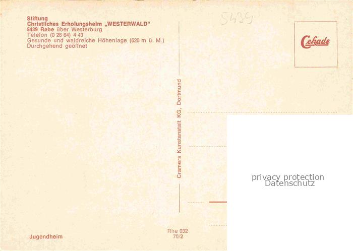74041020 Rehe Westerwald Rheinland-Pfalz Stiftung Christliches Erholungsheim Westerwald postalisch nicht gelaufen Erhaltung siehe scans [WerneD78] KatCode: 11110007143285
