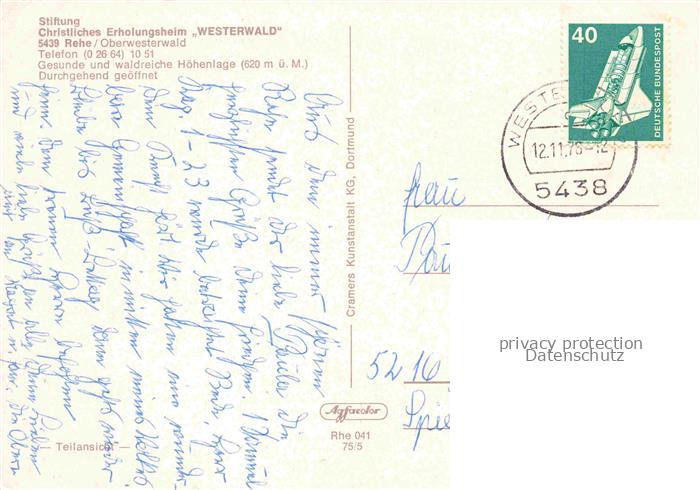 74040757 alte Postkarte Rehe Westerwald Rheinland-Pfalz Stiftung Christliches Erholungsheim Westerwald postalisch gelaufen Erhaltung siehe scans [FriedD77] KatCode: 11110007143285