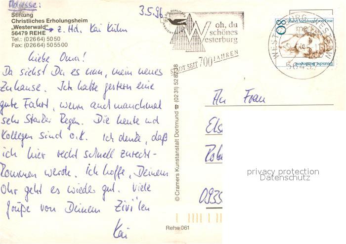 73641140 alte Postkarte Rehe Westerwald Stiftung Christl Erholungsheim Westerwald postalisch gelaufen Erhaltung siehe scans [WerneD78] KatCode: 11110007143285