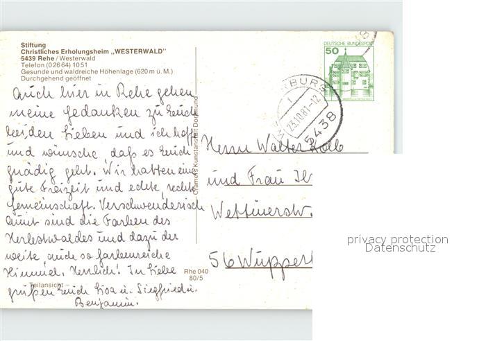 72201122 alte Postkarte Rehe Westerwald Stiftung Christliches Erholungsheim Westerwald postalisch gelaufen Erhaltung siehe scans KatCode: 11110007143285